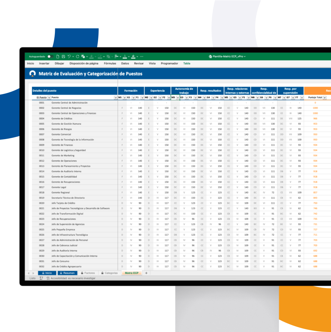 La Matriz ECP es una herramienta técnica y automatizada diseñada para aplicar la metodología de valoración de puestos en una organización. Con base en factores predeterminados, escalas y categorías, permite calcular puntajes y clasificar puestos de forma eficiente, sin necesidad de construir el sistema desde cero.